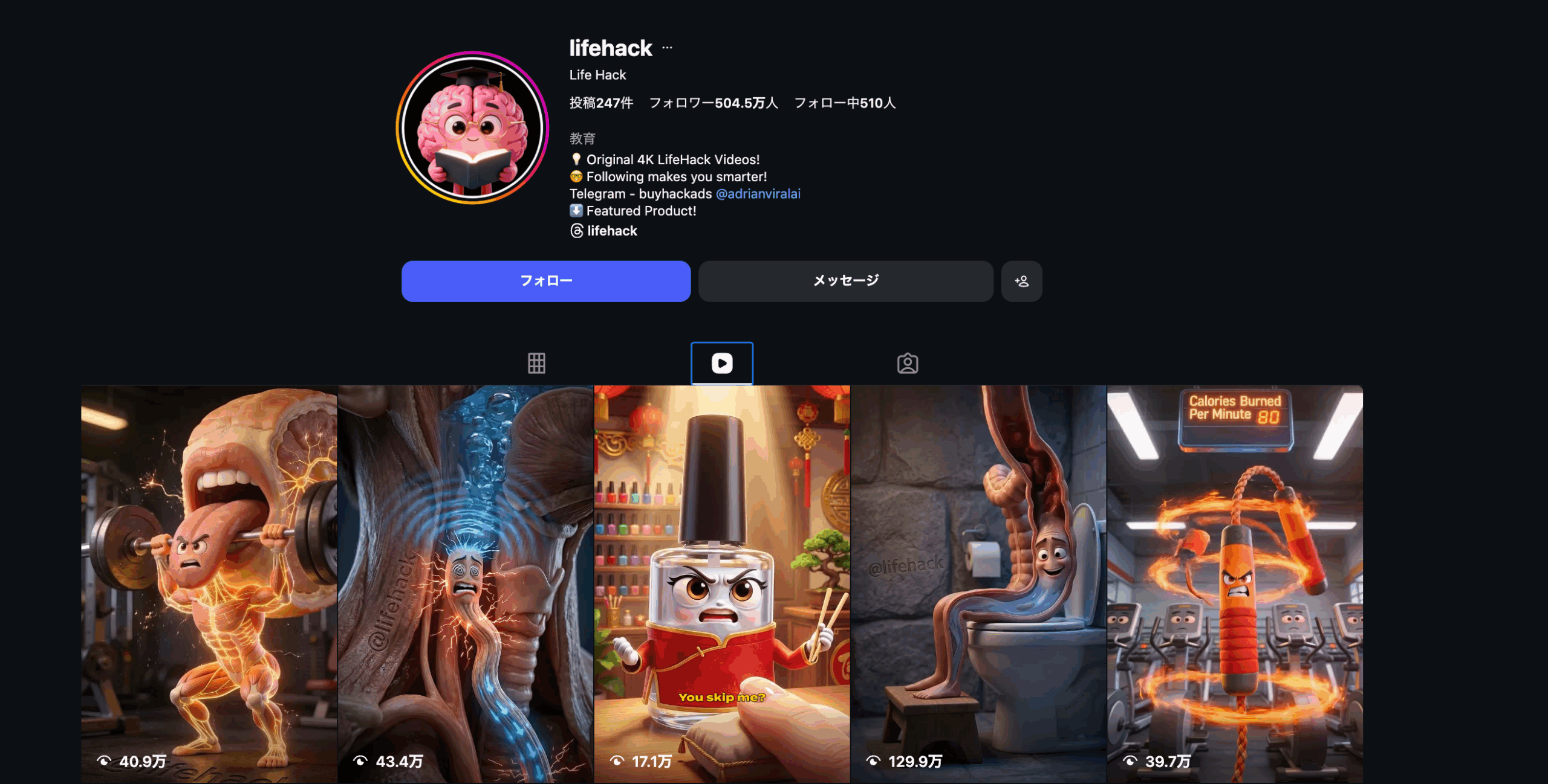 ライフハック動画だけだと埋もれる時代ですが、この2つが掛け合わさると視聴完了率が増えてアルゴリズム的に一気に拡散されます。